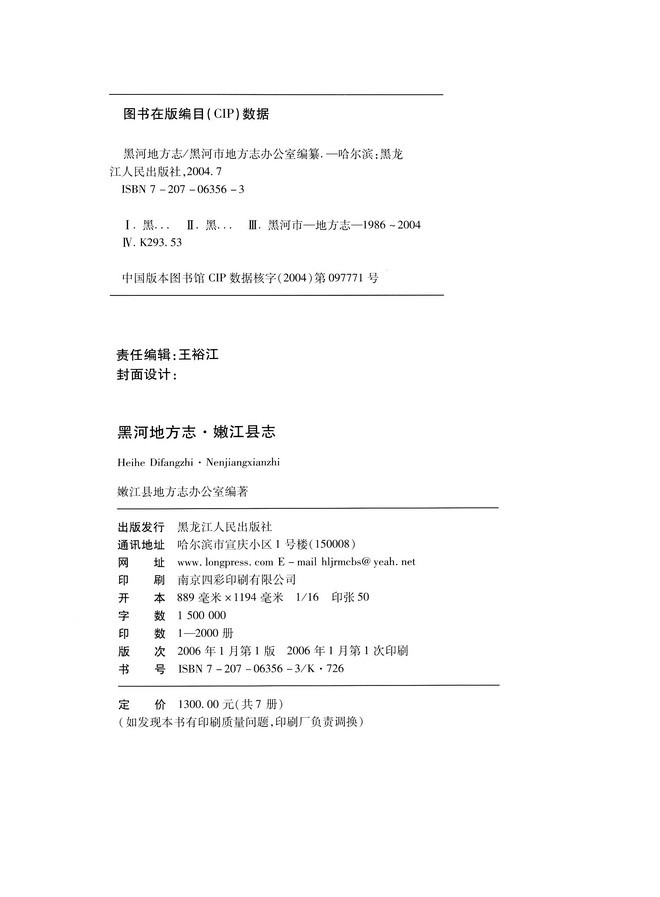 《嫩江县志》(1986~2000)各篇章责任编辑