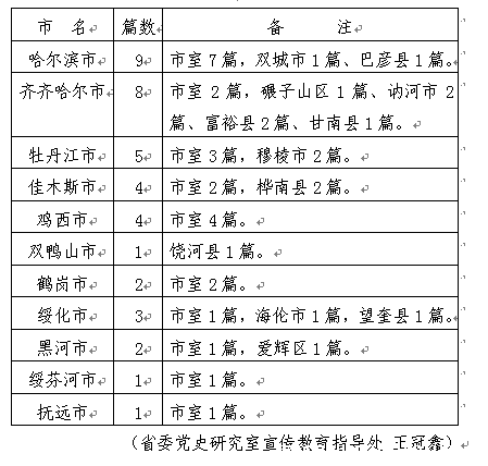 《黑龙江党史工作信息》2016年度用稿情况统计